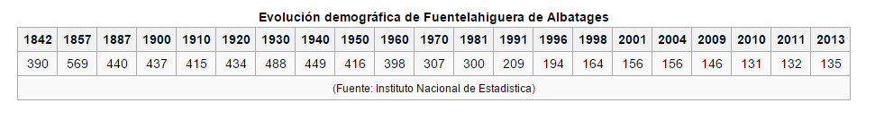 Evolución demográfica de Fuentelahiguera de Albatages a partir de 1842